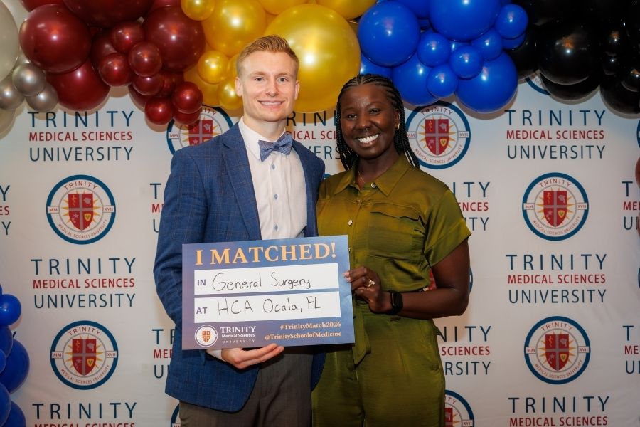 All of a sudden, I got an email from Trinity encouraging me to apply. It had a picture of palm trees and a button that said, “Apply Now for Free.” I was like, ‘All right, sweet, if it's free, it's me.’ So, I applied and ended up meeting with an admissions counselor who talked to me about the school and scholarship opportunities. I had the opportunity to experience the first sixteen months of med school in a warm, sunny place and check out the islands. I was like, ‘Why not? Let's do it.’ And that’s how I got to Trinity.